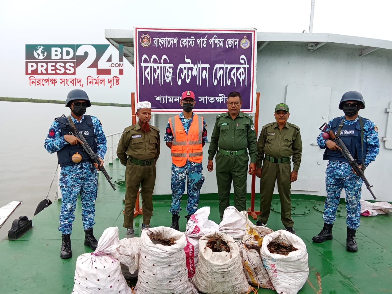 অপরদিকে ২৯ আগস্ট শুক্রবার সকাল ১১টায় কোস্ট গার্ড স্টেশন দোবেকি কর্তৃক সুন্দরবনের আর পাঙ্গাসিয়া নদীতে টহল চলাকালে চারটি সন্দেহজনক কাঠের বোট তল্লাশি করা হয়। এসময় প্রায় ২ লাখ ২০ হাজার টাকা মূল্যের ২০০ কেজি অবৈধ কাঁকড়া এবং ৫০০টি কাঁকড়া ধরার চারু জব্দ করা হয়। পরে জব্দকৃত সব মালামাল দোবেকি ফরেস্ট কর্মকর্তাদের নিকট হস্তান্তর করা হয়।