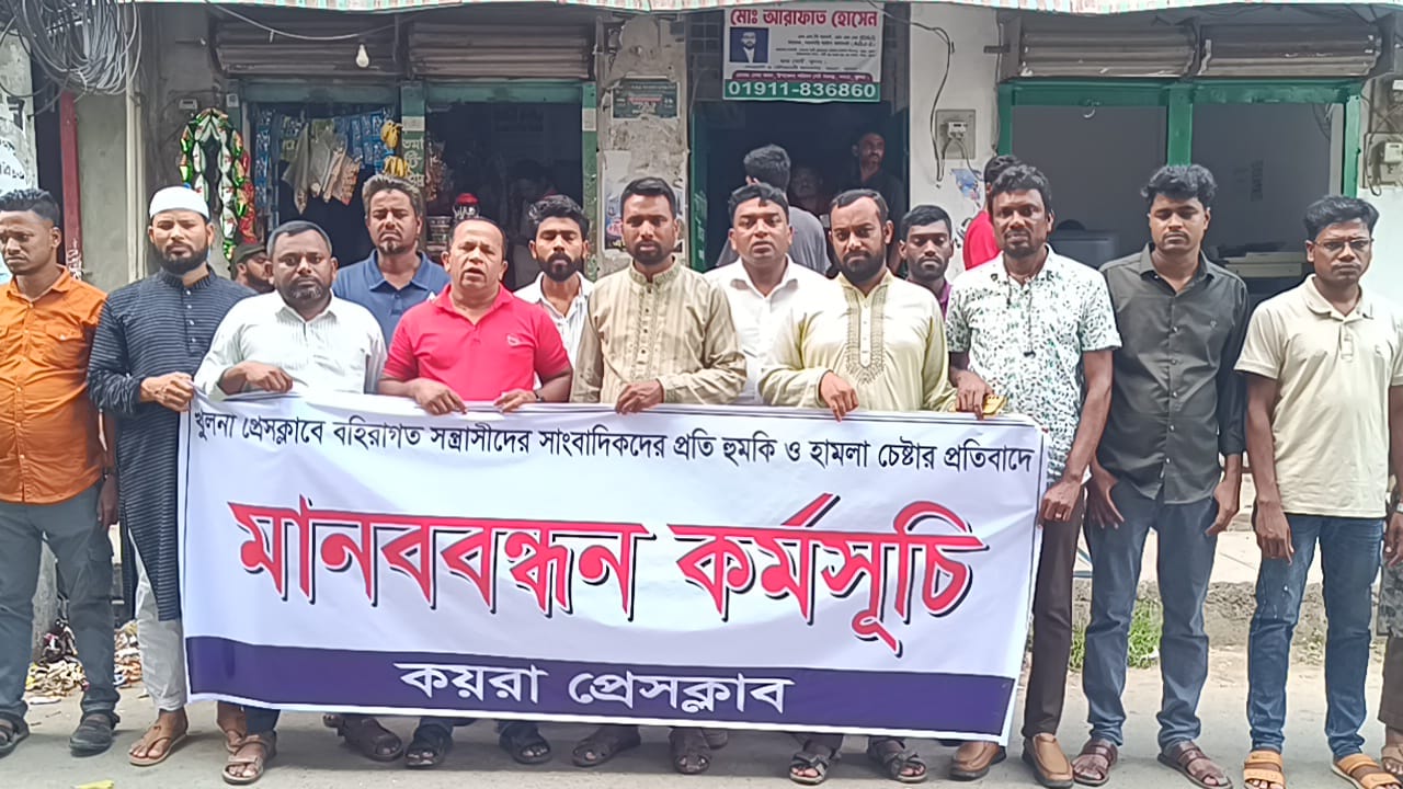 খুলনা প্রেসক্লাবে বহিরাগতদের হামলার প্রতিবাদে কয়রায় মানববন্ধন