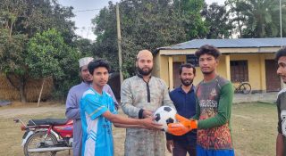 চারঘাটে চেয়ারম্যান পদপ্রার্থী তরিকুল ইসলাম রকির উদ্যোগে ফুটবল বিতরণ